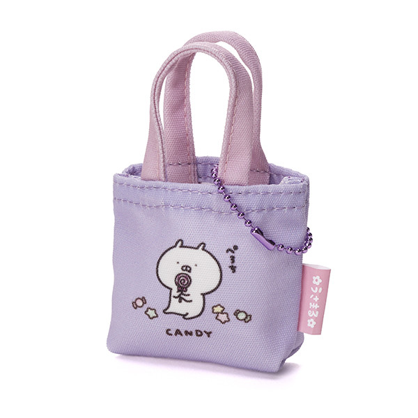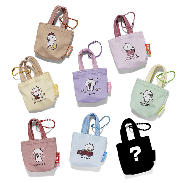 商品本体サイズ:W55×D25×H105(mm) 小物を入れたり、ぬいぐるみに持たせたり♪ミニミニサイズのトートキーチェーンです。※ランダム全8種