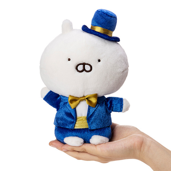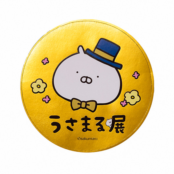ゴールドステッカー:W100×H100(mm) ドレスアップしたうさまる&うさこのペアぬいぐるみ(BOX入り)。全商品にうさまる展ステッカー付き。