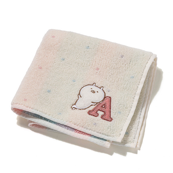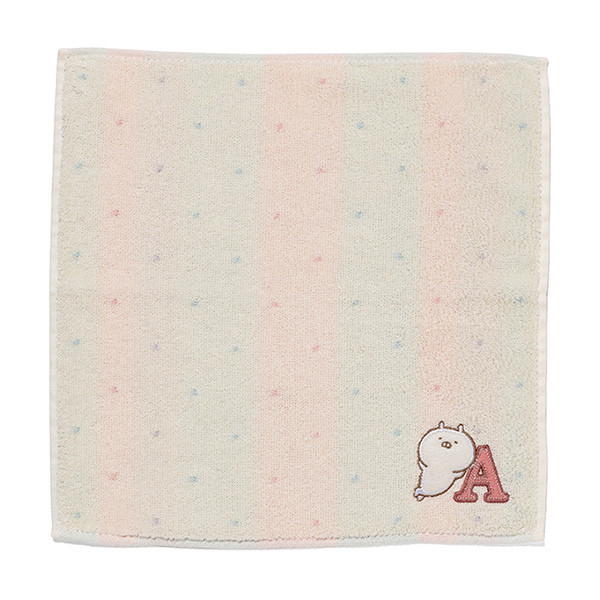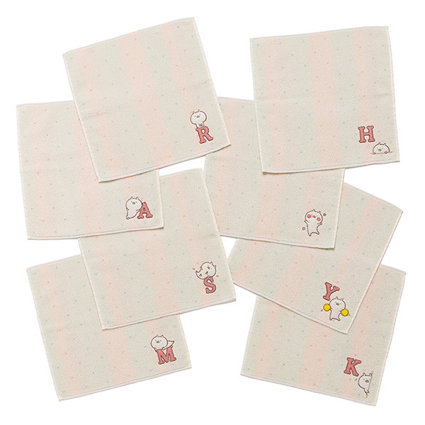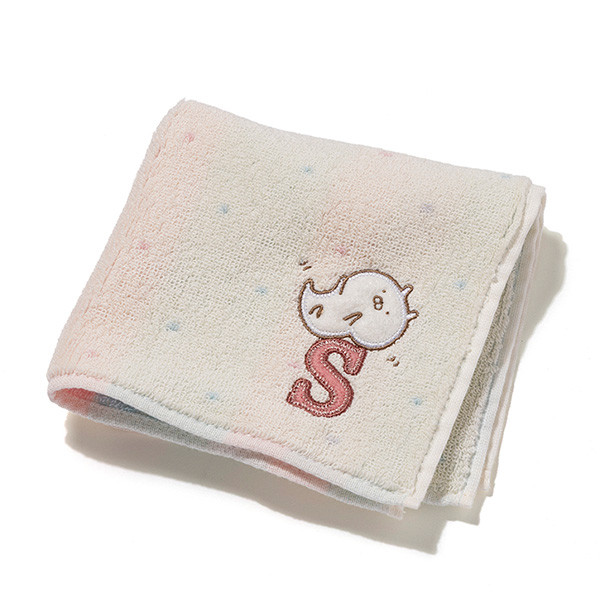 商品本体サイズ:W250×D250(mm) 刺繍でイニシャルとうさまるが施されたギフトにもオススメなミニタオルです。